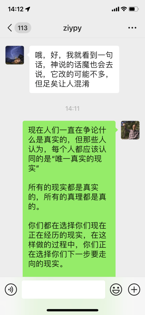 People keep arguing over what is true at this time, but those people think that there is just reality that everyone is supposed to agree upon as the ‘one true reality.’